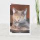 Comical grey kitty cat happy birthday card, personalise the text to suit any occasion, example missing you, or belated birthday.