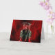 The Grim reaper sat on his throne of skulls, holding his scythe, with blood red lightning flashing in the background. Card inside reads: Happy Birthday.