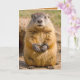 A groundhog wearing handcuffs stands defiantly next to its burrow, casting a shadow.