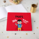 Cartoon character super hero pointing to the number of his or her birthday. On the back they are pointing to the date.