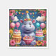 Birthday hippo with cake and balloons napkin