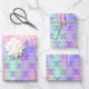 Birthday holographic pink glitter drips name wrapping paper sheet