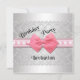 Grey and pink birthday invitation with text on the back that can be customised to suit your own nedds