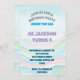 This charming "Under the Sea" themed birthday invitation card features a beautiful watercolor-style background with gentle waves in soft pastel shades of blue, pink, and green, along with scattered bubbles. All text and information on this card are fully customisable to match your specific child's birthday party details, including the child's name, the age they are turning, the date and time of the party, the full address of the venue, as well as the contact names and phone numbers for RSVP. This design is perfect for creating a personalised and appealing invitation for an ocean-themed birthday celebration.