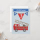 Celebrate a boy’s 3rd birthday with this fun, fire engine birthday invitation.