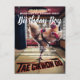 A comedic Birthday card featuring a cartoon chicken wearing boxing gloves, energetically kicking a punching bag with determination.