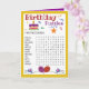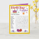 Young children will be excited to get a puzzle card with fun games from you. The puzzle card is decorated with illustrations of a cake, balloons, birthday cards, music notes, hearts, sun, party hat, and a wrapped gift. The perfect activity card for your child, nephew, niece, grandchild, student, classroom, or godchild. Games included: Find the twelve words, Dot-to-dot, Find the five candy pieces, and a Party maze. Inside greeting: Happy Birthday! There is room to add a child's name on the inside right at the top.