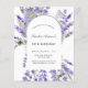 A stylish white background. Decorated with lavender floral arch frame with bees. Personalise and add a name and details.