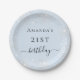 For a girly and glamourous 21st (or any age) birthday party. A light blue background with faux silver dust. Personalise and add a name and age 21