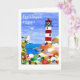 A Birthday Card with 'Happy Birthday' in Welsh and a lighthouse scene from a handpainted paper collage by Judy Adamson. I can easily change the front text on request and the inside is left blank for your own message.