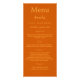 Birthday party menu card. Personalise and add a name, age, date and the menu. A burnt orange background. Golden coloured letters.