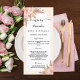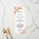 An elegant bohemian boho style birthday menu card. Personalize and add your name, date and the celebration menu. Arch frame and golden marble print as background. Decorated with blush pink florals and pampas grass.