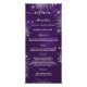 Birthday party menu card. Personalise and add a name, age, date and the menu. A purple background, decorated with faux silver glitter dust. The purple colour is uneven. White coloured letters.