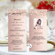Birthday party menu card. Personalise and add a name, age, date and the menu. Rose gold faux metallic looking background, decorated with faux glitter. Black coloured letters.