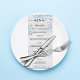 Birthday party menu card. Personalise and add a name, age, date and the menu. Silver faux metallic looking background, decorted with blue faux glitter dust. Black coloured letters.