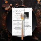Birthday party menu card. Personalise and add a name, age, date and the menu. A chic white background. Black coloured letters.