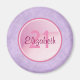 Birthday themed design. A pretty pink circle holds your customised name and age. The background is a pale pastel lavender purple. Elegant and chic.