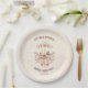 Taupe, ''rosegold'' celestial paper plates with a moon phase and mushrooms, perfect for your next family reunion, garden party, birthday or any magical event. Easily personalise all the text or lave it blank. - Kate Eden Art.