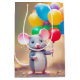 Cute grey mouse with colourful birthday party balloon bouquet