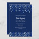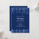 A modern, elegant and invitation. A navy blue background decorated with blue confetti. Personalise and add a name and details. White text.