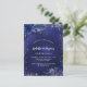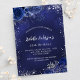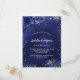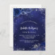 A navy blue background, decorated with faux silver glitter, sparkles and blue florals. The blue colour is uneven. Personalise and add a name and party details.