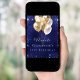 A welcome banner for a girly and glamourous 21st (or any age) birthday party. A navy blue background with elegant faux sparkles and golden balloons. The blue colour is uneven. Personalise and add a name and age 21. White letters.