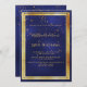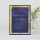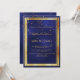 A trendy, modern 50th (or any age) birthday party invitation card for men, guys, male. A navy blue background. The blue colour is uneven. With a faux gold frame and golden confetti sprinkle, golden coloured letters. Personalise and add your name and party details.