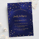 A birthday party invitation for both him and her. A navy blue background decorated with faux gold stars. The blue colour is uneven. Personalise and add a name and party details. Golden coloured text.