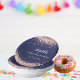 A navy blue background. Decorated with rose gold confetti. Personalise and add a name, age and the date. White text.