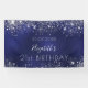 For a girly and glamourous 21st (or any age) birthday party. A navy blue background with elegant faux silver dust. The blue colour is uneven. Personalise and add a name, date and age 21. White letters. The name is written with a modern hand lettered style script with swashes.