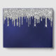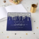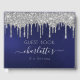 A guestbook for a feminine and glamourous 21st (or any age) birthday party. A stylish navy blue background with faux silver glitter drips, paint dripping look. The blue colour is uneven. Add your name and age 21. The name is written in white with a modern hand lettered style script with swashes. Personalise and add your text on the spine.