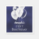 A napkin for a girly and glamourous 21st (or any age) birthday party. A navy blue background with white balloons. The blue colour is uneven. Personalise and add a name and age 21. White letters.