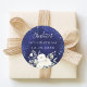 Birthday navy blue white flowers classic round sticker