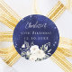 A navy blue background decorated with white florals, roses. The blue colour is uneven. Personalise and add a name and age. White letters.