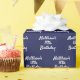 Birthday navy blue white name script minimalist wrapping paper