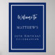 Birthday navy blue white party welcome poster