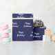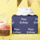 Navy blue background, white text: Happy Birthday! A modern hand lettered style script