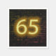Illuminated marquee neon sign on dark brick wall for 65th birthday.