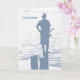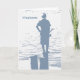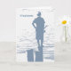 A young man fishing from a stump is featured on this fishing birthday greeting.