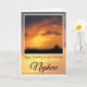 Happy Birthday Nephew. Deep orange sun glowing behind dark, wispy storm clouds. Text says: Happy Birthday to my wonderful Nephew. Inside card is blank.