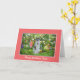 Fully customisable, you can easily change the text on the front of this birthday card for a niece as well as the inside verse. A beautiful black white short haired cat with blue eyes sits among the colourful flowers. Bright pink gladiolus, purple irises, red tulips, and purple pansies are just some of the flowers in this garden. Customise by using the provided text templates.