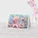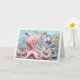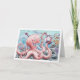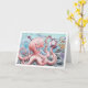 This is a birthday card depicting a red octopus happily opening his birthday present.