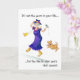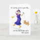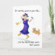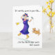 A light-hearted birthday card for an older woman with a pen and wash painting of a woman dancing and singing at Glastonbury Festival (hence the wellies). She is holding a microphone and a little dog is joining in. The text on the front says, 'It's not the years in your life, but the life in your years that counts'. Inside message is 'Happy Birthday' but you can customise it to make it a Retirement card also.