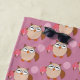 This awesome beach Towel features a cute brown owl with big sleepy eyes. The owl is holding a pretty pale pink balloon and a bouquet of bright pink flowers wrapped in a pale pink cone.