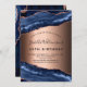 A modern, stylish and glamourous invitation for a 30th (or any age) birthday party. Blue and rose gold agate, marble stone background. The name is written with a modern hand lettered style script. Personalise and add your party details.
