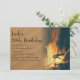 Birthday party invitations for a guy's party. Bonfire theme, with sand background for dark text. Add his name with "50th (or any age) birthday". All party text is added in a paragraph. A perfect design for a summer or fall backyard bonfire party. Also, buy as an instant download to share online.