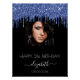 A poster for a girly and glamourous 21st (or any age) birthday party. A black background with navy blue faux glitter drips. Personalise and add your own high quality photo of the birthday girl. The text: The name is written with a modern hand lettered style script with swases. To keep the swashes only delete the sample name, leave the spaces or emoji's in front and after the name. Tempates for a name, age 21 and a date.