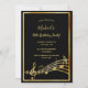 A trendy, modern 50th or any age birthday party invitation card for both men and women. A classic black background, with faux gold frame and music notes, golden coloured letters. Templates for your party information. Back: Black colour faux gold music notes.