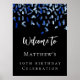 For a 50th (or any age) birthday party. Black background, white text. Decorated with blue confetti. Personalise and add a name and age.
