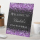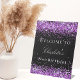 A welcome board for a girly and glamorous 21st (or any age) birthday party. A stylish black background decorated with purple faux glitter, sparkles. Personalize and add a name and age 21. White letters.